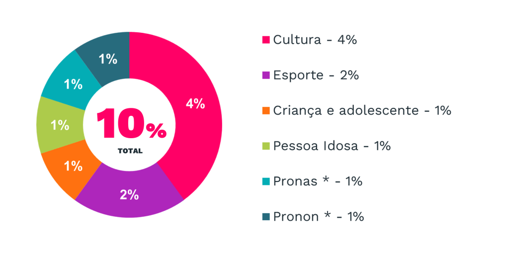 Empresas que apuram o Imposto de Renda de Pessoa Jurídica (IRPJ) pelo regime de lucro real podem destinar parte do imposto devido para projetos incentivados. Dessa forma, o imposto de renda devido pode ser direcionado para projetos previamente aprovados nas áreas contempladas, de acordo com os percentuais: