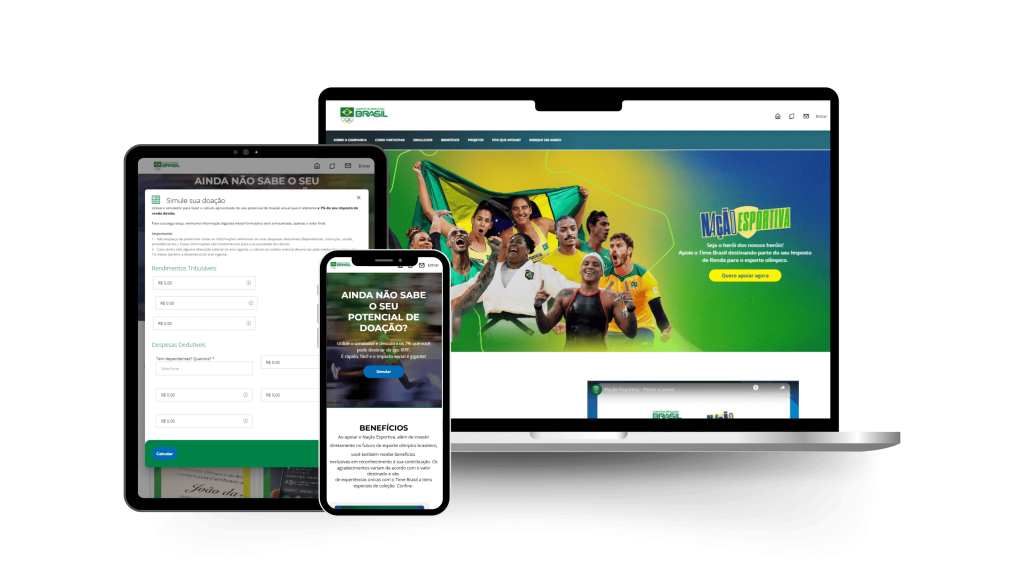 Nação Esportiva é o programa do COB que permite a qualquer pessoa destinar até 7% do seu Imposto de Renda devido para projetos olímpicos. Sem custo extra, você fortalece o esporte e apoia o Time Brasil. O valor aportado volta 100% para você na hora da restituição ou é abatido do valor a ser pago!