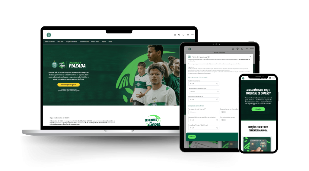 Sem nenhum custo adicional, a contribuição vai integralmente para os projetos esportivos de base, que formam os jovens atletas do Coritiba. O valor é 100% abatido do imposto a pagar ou restituído integralmente no ano seguinte.